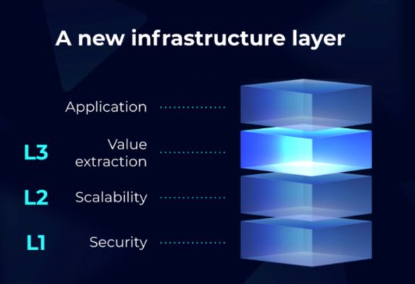 レイヤー3(L3)は既存のレイヤー1(L1)、レイヤー2(L2)に付加価値を創出するアプリケーションの開発し、ユーザービリティーやアプリの価値向上を目的としています。